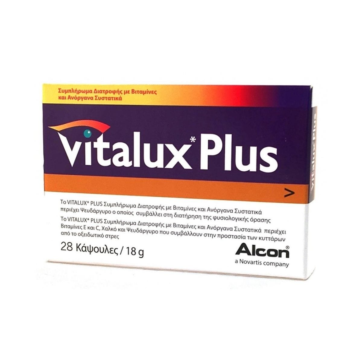 Συμπλήρωμα διατροφής με βιταμίνες και ανόργανα συστατικά. Περιέχει ψευδάργυρο ο οποίος συμβάλλει στην διατήρηση της φυσιολογικής όρασης. Περιέχει βιταμίνες E και C, χαλκό και ψευδάργυρο, που συμβάλλουν στην προστασία των κυττάρων από το οξειδωτικό στρες.