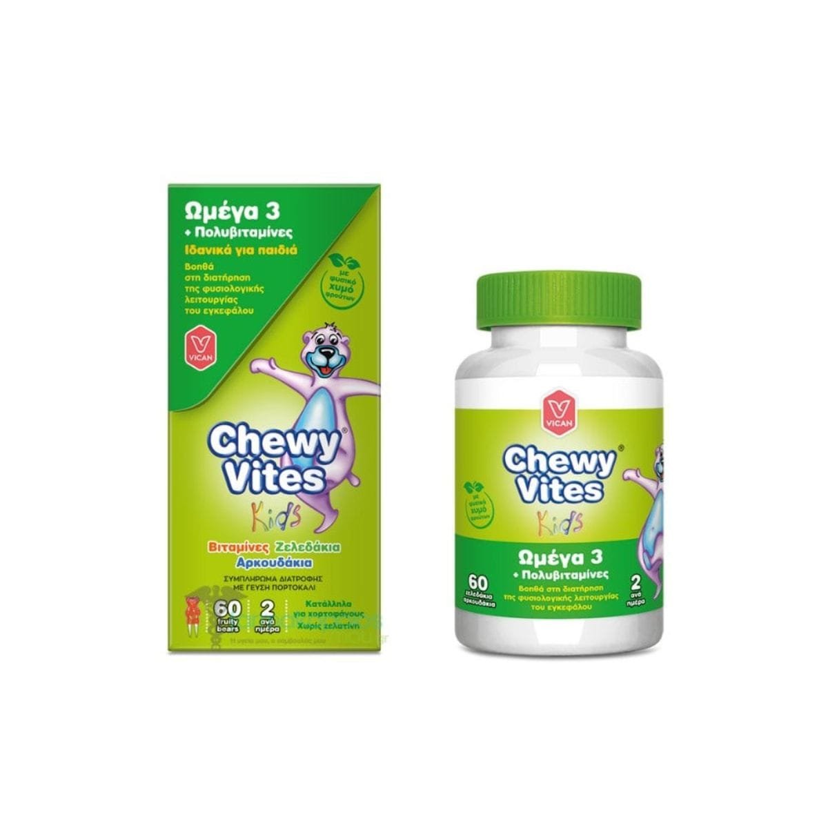 Συμπλήρωμα διατροφής που περιέχει ωμέγα 3 λιπαρά οξέα (DHA), 10 απαραίτητες βιταμίνες, ψευδάργυρο και ιώδιο, συμβάλλοντας στην υγιή ανάπτυξη των παιδιών και στη διατήρηση της φυσιολογικής εγκεφαλικής λειτουργίας. Διατίθενται σε ζελεδάκια-αρκουδάκια, που περιέχουν φυσικό χυμό από φρούτα, καθιστώντας εξαιρετικά εύκολη τη λήψη τους. Κατάλληλο και για ενήλικες.